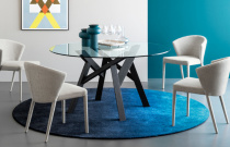 Jídelní židle moderního designu vhodná pro veřejné prostory i domácnosti. Celočalouněné provedení.