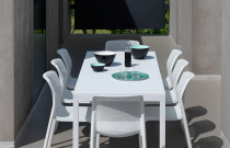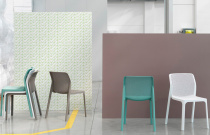 Jídelní židle moderního designu určená pro veřejné prostory i domácnosti. Vhodné pro venkovní i vnitřní použití. Celoplastové provedení.