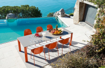Rozkládací stůl vhodný pro exteriér i interiér. Kovová konstrukce, deska HPL nebo keramika. Kvalitní zpracování, moderní vzhled.