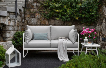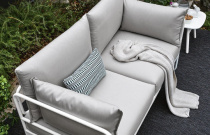 Čalouněná lavice s kovovou konstrukcí, čalounění outdoor rychleschnoucími látkami SUNBRELLA