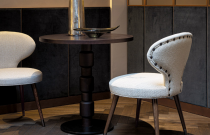 Čalouněné křeslo, mořená dřevěná podnož, čalounění látka / eko-kůže / kůže. Produkt splňuje normu British standards a je vhodný pro komerční prostory.