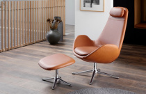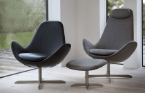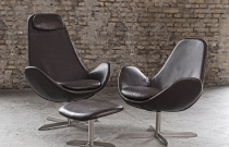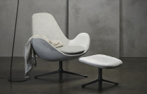 Čalouněné křeslo dánského výrobce Theca. Čalounění v látce nebo přírodní kůži. Kovová otočná podnož. Výborný komfort sezení. V nabídce dva druhy opěradla. Možno doplnit i o podnožník.