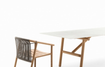 Venkovní dřevěná židle zn.Ditre Italia. Výplet syntetickým provazem. Přírodní jasanové dřevo. Možno doplnit o čalouněný sedák nebo opěradlo.