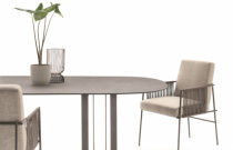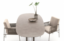 Venkovní jídelní stůl, lakovaná kovová podnož, top mramor nebo HPL kompaktní laminát. V nabídce více velikostí.