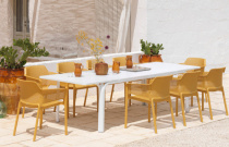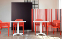 Jídelní židle moderního designu určená pro veřejné prostory i domácnosti. Vhodné pro venkovní i vnitřní použití. Celoplastové provedení.