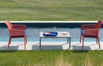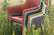 Jídelní židle moderního designu určená pro veřejné prostory i domácnosti. Vhodné pro venkovní i vnitřní použití. Celoplastové provedení.
