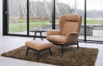 Čalouněné křeslo dánského výrobce Theca. Čalounění v látce nebo přírodní kůži. Dřevěná konstrukce. Výborný komfort sezení. V nabídce i podnožník.