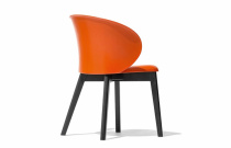 Jídelní židle s dřevěnou podnoží a plastovým sedákem (polypropylén).