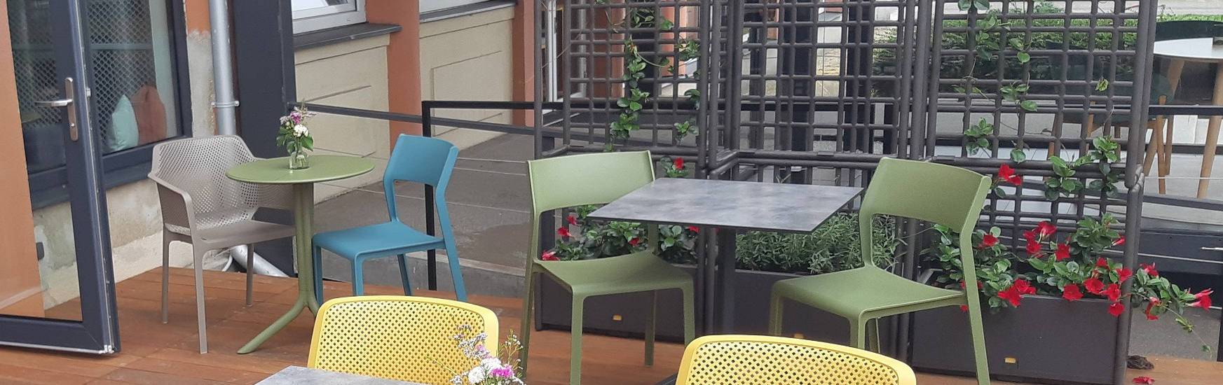 Realizace kafé-restaurace spol.Polstrin ve spolupráci se společností Nautilus. Nábytek italské značky NARDI.